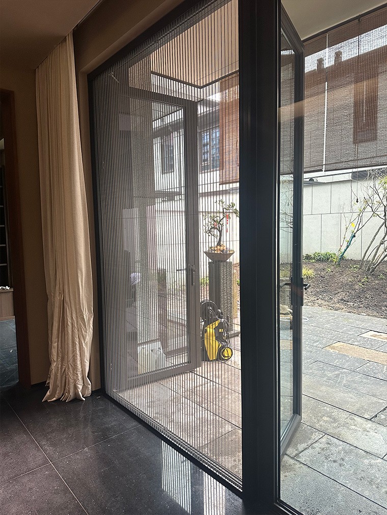 今天我們安裝的是合院,客戶從天貓上了解到我們品牌,選的是韋柏A型無下軌隱形紗門和韋柏FJ款防風卷軸紗窗,