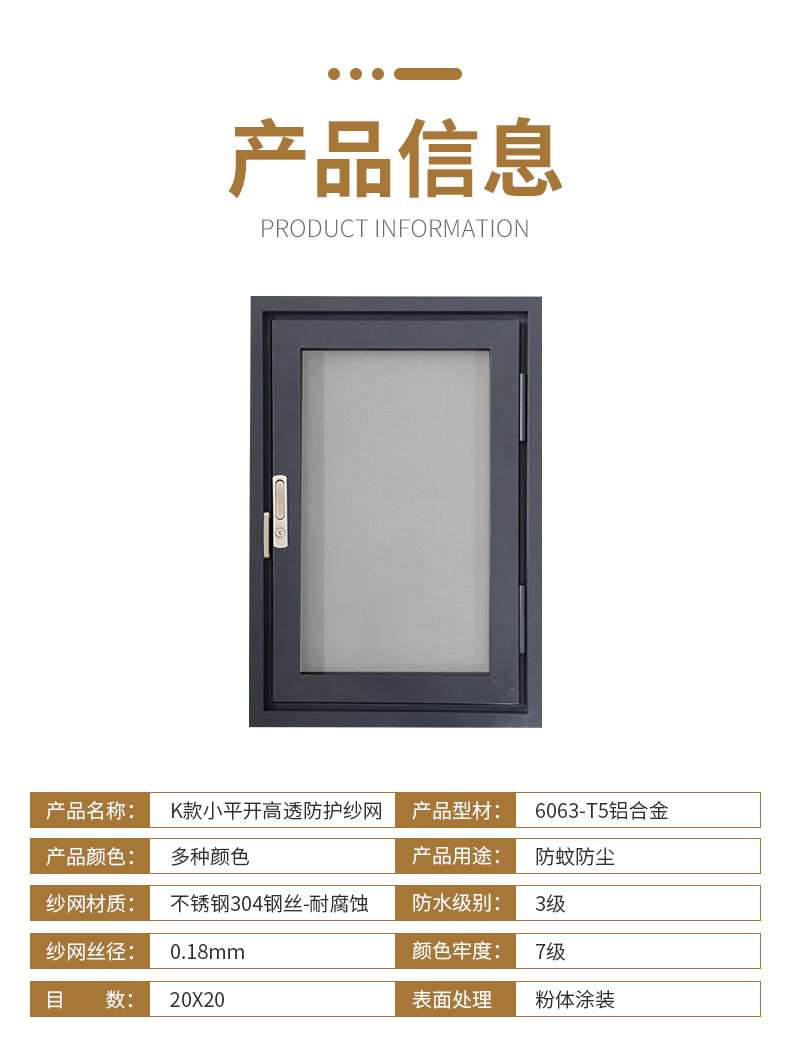 • 產品名稱:韋柏小平開金剛網防護紗窗