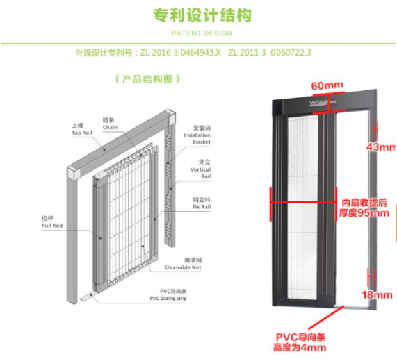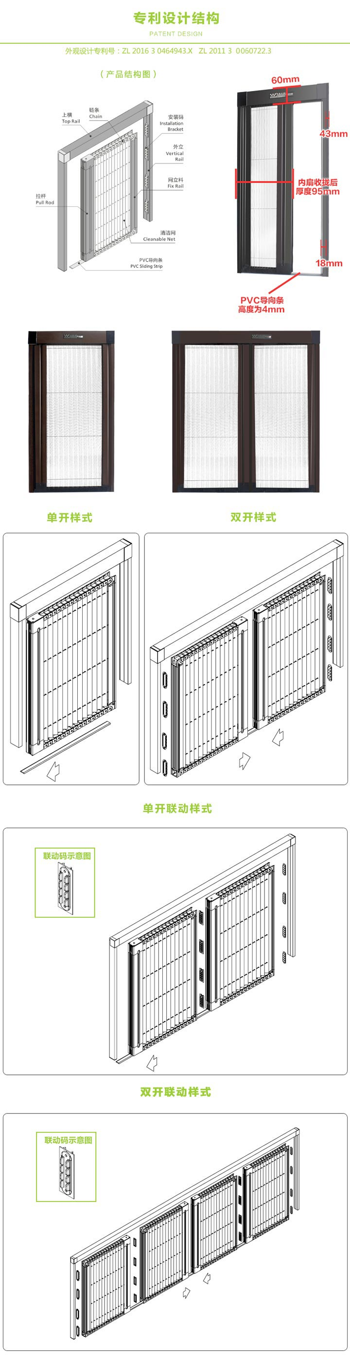 A款無下軌折疊紗門型材:6063-T5鋁合金紗網: